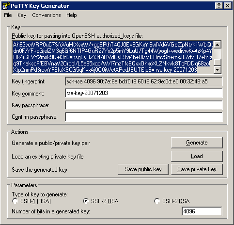 Once you have obtained PuTTYgen, start it, in the lower right there you will see a text box for Number of bits in generated key, change this to 4096.